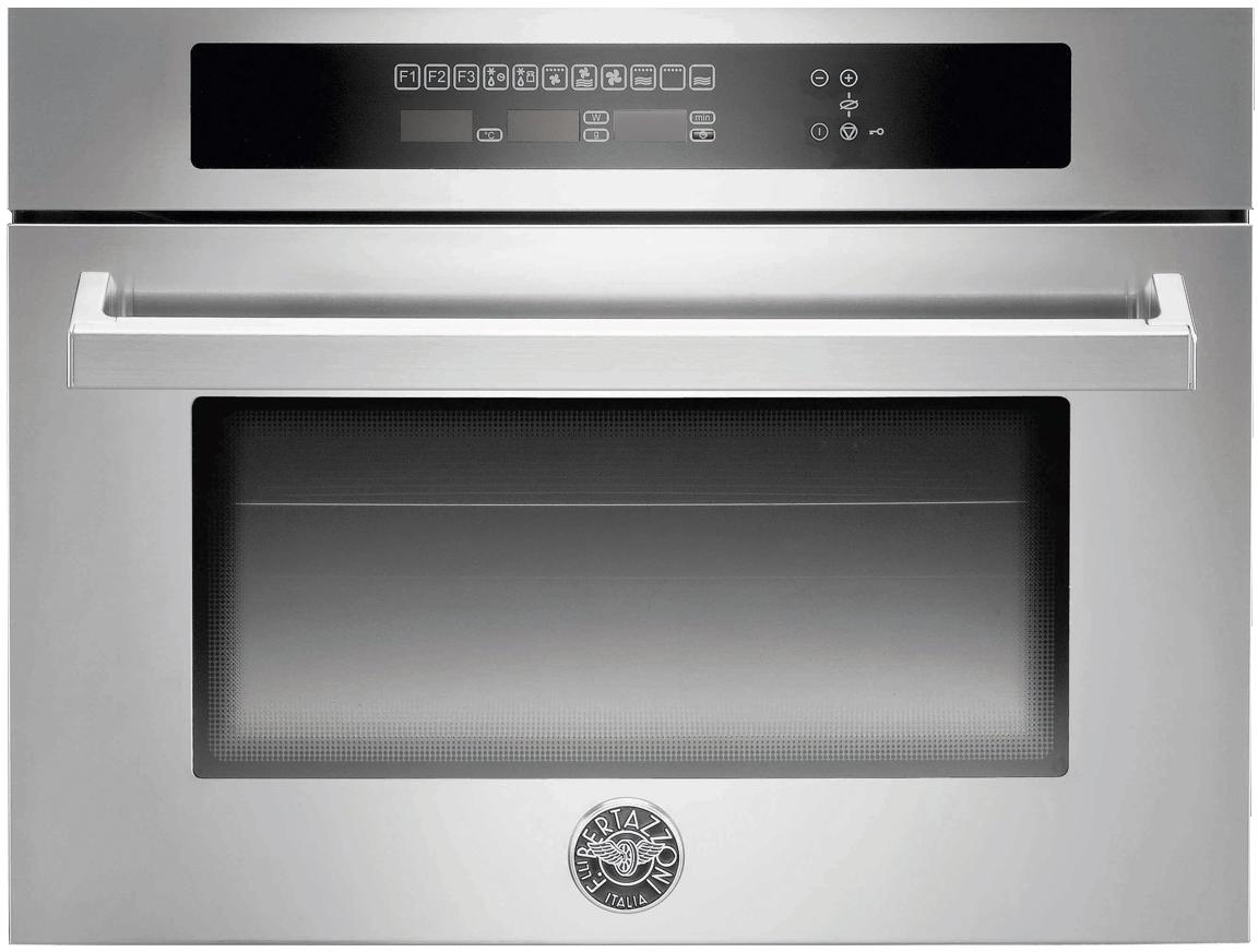 Bertazzoni ovens are superb cooking appliances designed, engineered and made in Italy. All Bertazzoni appliances integrate seamlessly into style-harmonized suites for a true, high-performing kitchen. The speed oven combines convection baking, electric grill and microwave in one versatile unit. The baking and microwave functions can be used together to complete cooking cycles in up to half the time without compromising results. With its intuitive controls and family-sized capacity, the Bertazzoni speed oven will become your go-to oven in your kitchen. All Bertazzoni appliances are covered by a 2-year warranty. Products and packaging are 99% recyclable.