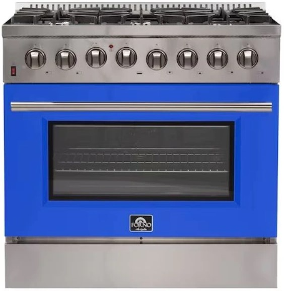 The continuous cast iron grates allow maximum stability of cookware and allow the ease of sliding pan off a hot burner. The 5.26 cu. ft. gas oven has a total broil and bake output of 44,000 BTU and the option of using true convection bake, broil or roasting. Included are 2 oven racks and LP conversion kit. Additionally, zinc coated metal knobs with bezel rings will maintain their beauty for years. All FORNO products come with a 2 year warranty.