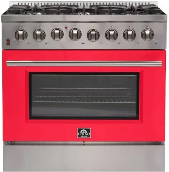 The continuous cast iron grates allow maximum stability of cookware and allow the ease of sliding pan off a hot burner. The 5.26 cu. ft. gas oven has a total broil and bake output of 44,000 BTU and the option of using true convection bake, broil or roasting. Included are 2 oven racks and LP conversion kit. Additionally, zinc coated metal knobs with bezel rings will maintain their beauty for years. All FORNO products come with a 2 year warranty.
