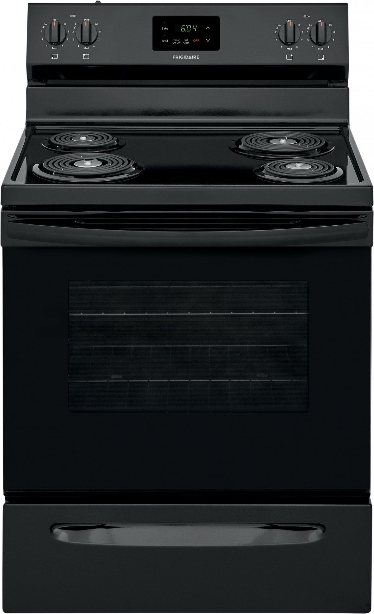 The Frigidaire 30 in. Freestanding Electric Range offers a 5.3 cu. ft. capacity oven and a 4-element electric cooktop featuring two 8 in. and two 6 in. coil elements, so you can cook more at once. Designed for safety, the cooktop includes indicator lights that let you know when it's still hot, while the large oven window allows you to easily monitor food as it bakes.Read More
