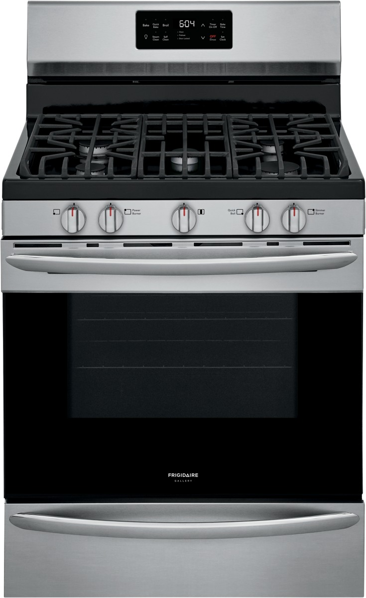 Frigidaire Gallery® 30" Stainless Steel Freestanding Gas Range features a 30-minute light oven cleaning that's chemical-free, odor-free, and fast, bake faster and more evenly with Quick Bake Convection, and get meals on the table faster with our powerful 17K BTU burner.Read More